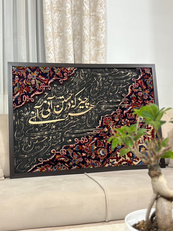 تابلوفرش دستبافت تلفیقی با شعر کالیگرافی